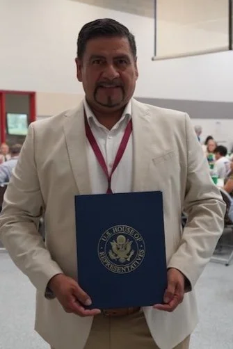 SACA President welcomes Ruben Reyes from Congressman Grijalva's office